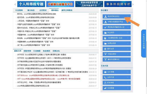 1、进入中国注册税务师协会官网,点击税务师考试报名;