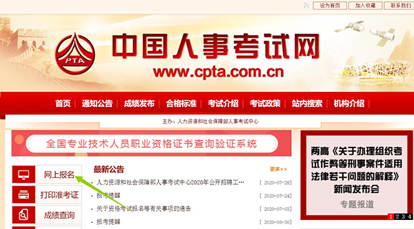 1、先打开中国人事考试网(http://www.cpta.com.cn),找到【网上报名】;