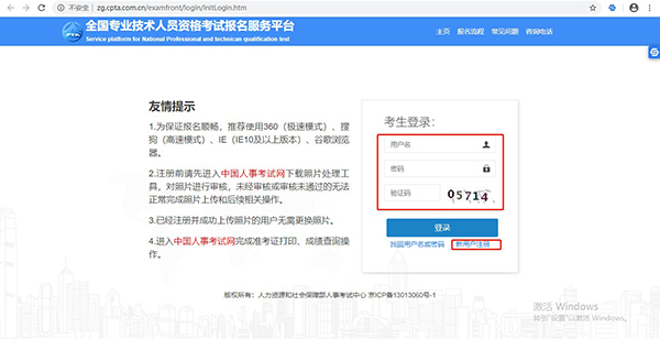 2、未注册考生需先进行注册,按页面提示进行信息填写,已注册考生可直接登录;