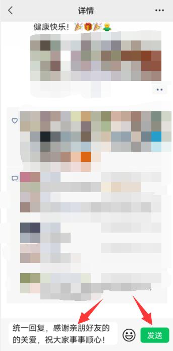 点击评论图标,在回复框中输入统一回复内容,点击发送即可。