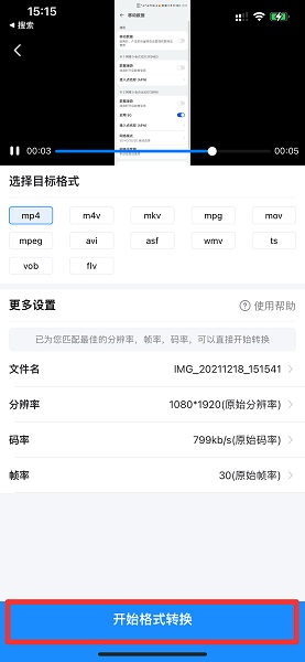在展开的界面中,选择mp4格式开始格式转换即可。
