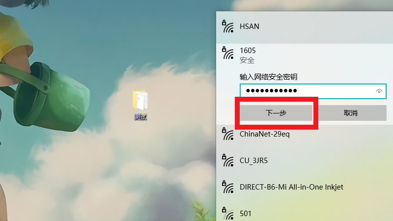 在输入密码后,点击下一步即可连接。