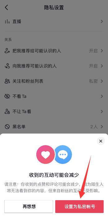 进入页面,点击私密账号,点击继续,设置为私密账号即可。