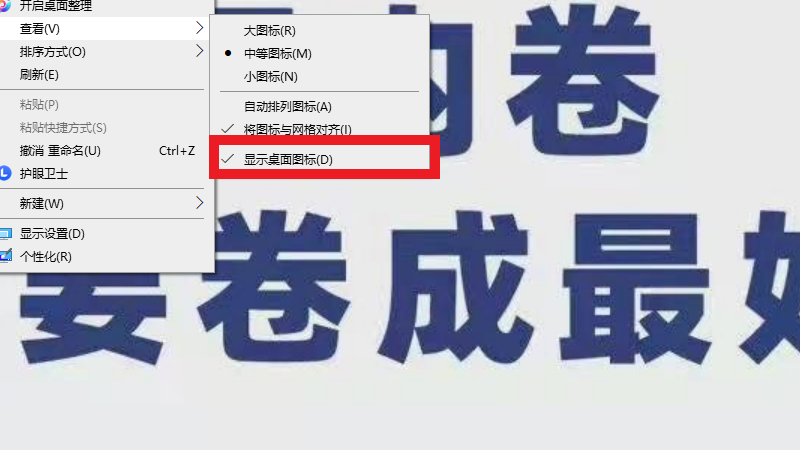 在查看界面中,点击显示桌面图标。