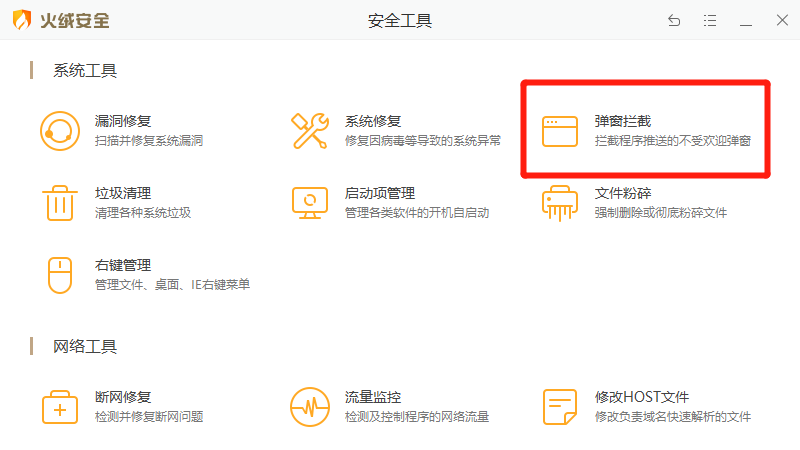 简介:1、在火绒安全软件界面中,点击安全工具。2、在展开的界面中,点击弹窗拦截。3、在弹窗拦截界面中,将拦截不受欢迎的弹窗开启即可。本视频由联想拯救者Y9000P、Windows11、火绒安全软件5.0.65.0录制