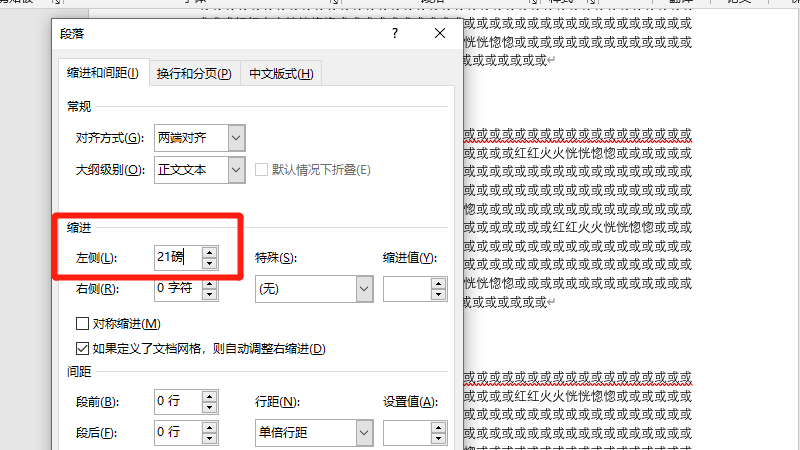 在展开的界面中,设置左缩进为21磅即可。