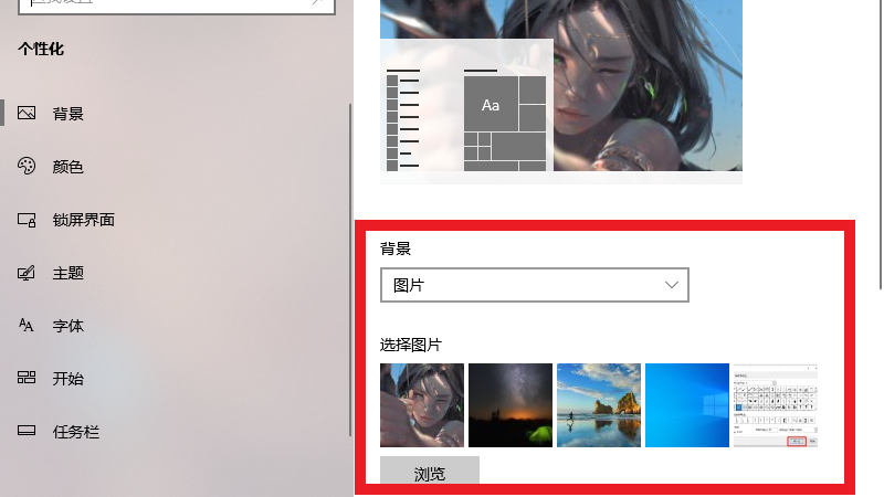 在展开的个性化界面中,即可查看电脑壁纸设置。
