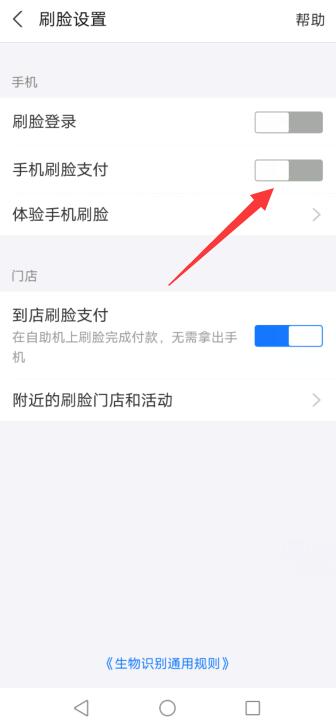 点击刷脸设置,进入页面,将手机刷脸支付按钮关闭即可。