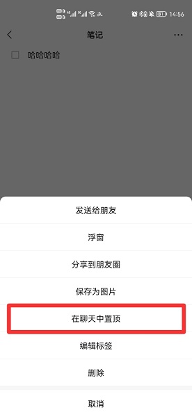 在展开的选项中,点击在聊天中置顶即可。