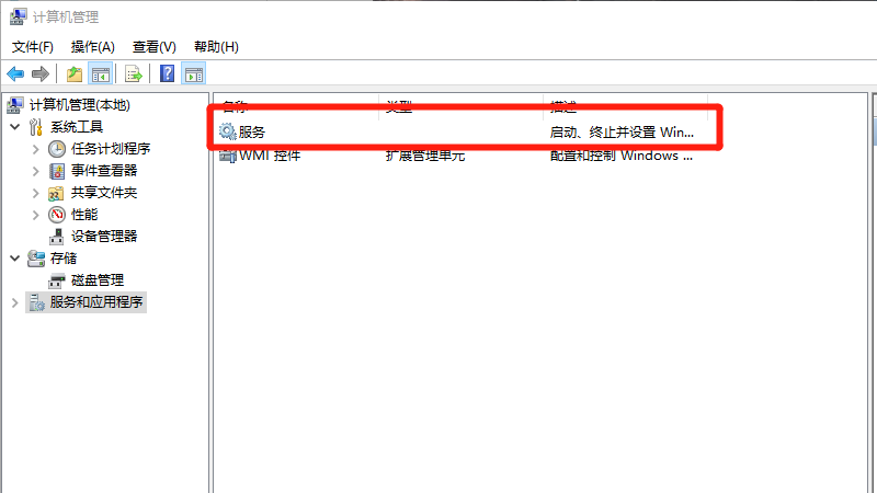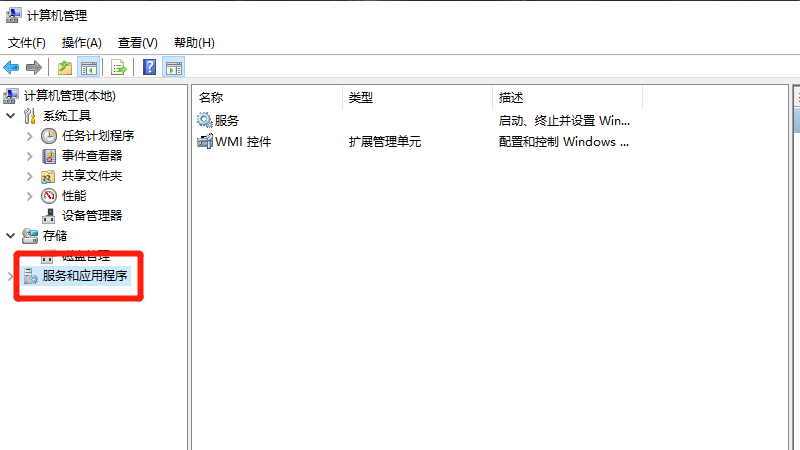 在计算机管理界面中,点击服务和应用程序。