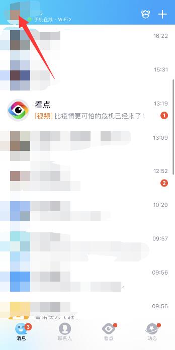以QQV8.8.85为例,qq亲密关系隐私选项里查看。分为3步,具体步骤如下:打开手机QQ,点击左上角的头像。