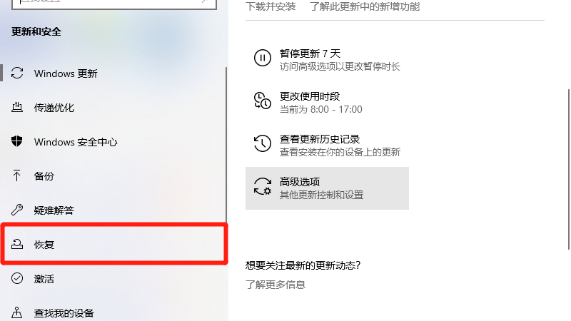 简介:1、在电脑设置界面中,点击更新和安全。2、在展开的界面中,点击恢复。3、在展开的恢复选项中,点击开始即可。本视频由联想拯救者Y9000P、Windows11、录制