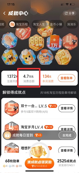 简介:1、在我的淘宝界面中,点击淘宝人生。2、在淘宝人生界面中,点击成就。3、在成就中心界面中,点击淘宝历程。4、在展开的界面中,查看消费总额即可。本视频由iPhone12、iOS15.4、淘宝10.6.0录制