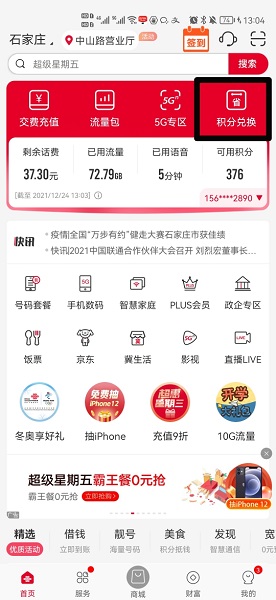 联通积分换话费可以在中国联通APP中,选择积分兑换进行操作即可。以手机华为p40为例,联通积分换话费的步骤分为4步,具体操作如下:在中国联通界面中,点击积分兑换。