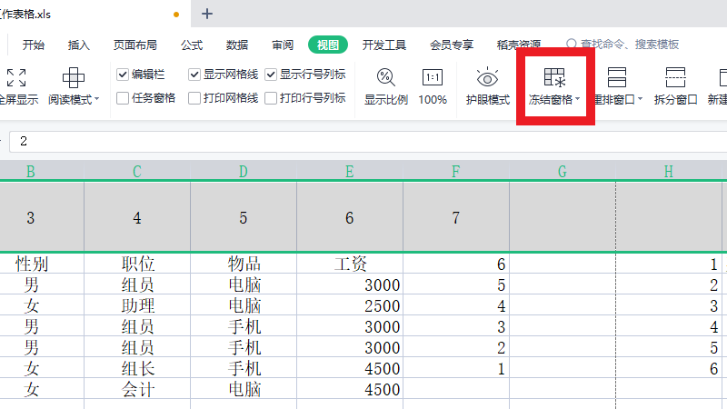 在展开的界面中,点击冻结窗格。