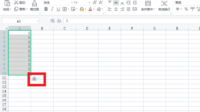 在下拉单元格后,点击自动填充选项。