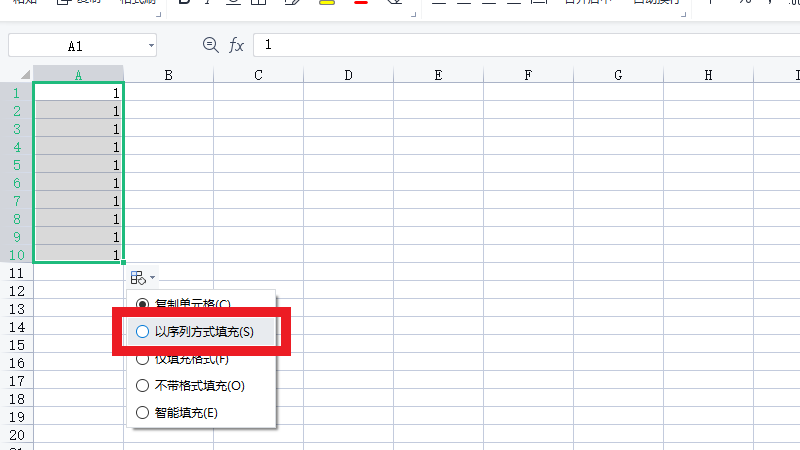 在展开的选项中,勾选以序列方式填充即可。