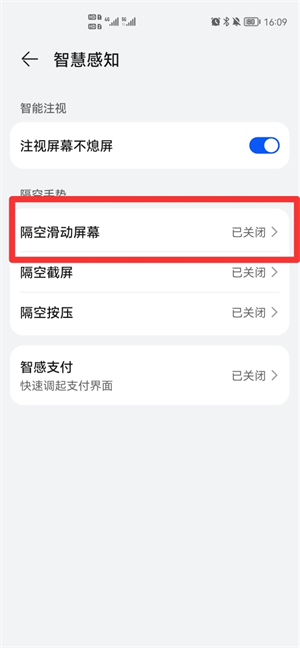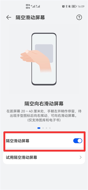 在隔空滑动屏幕界面中,设置隔空滑动屏幕即可。