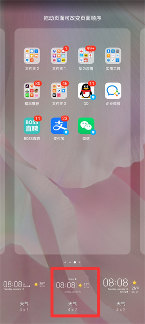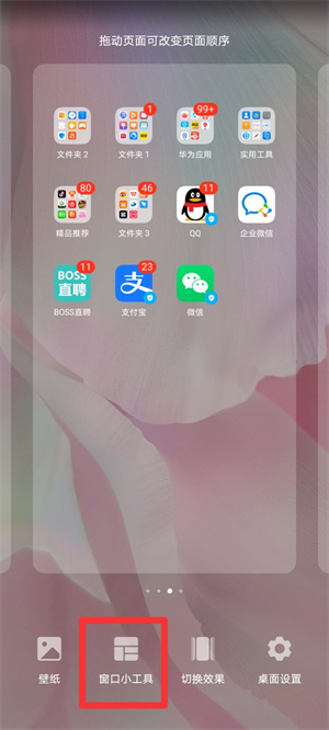 简介:1、在手机桌面中,双指向内滑动屏幕。2、在展开的选项中,点击窗口小工具。3、在窗口小工具界面中,点击天气。4、在展开的天气中,选择样式即可。本视频由荣耀50、MagicUI4.2、录制