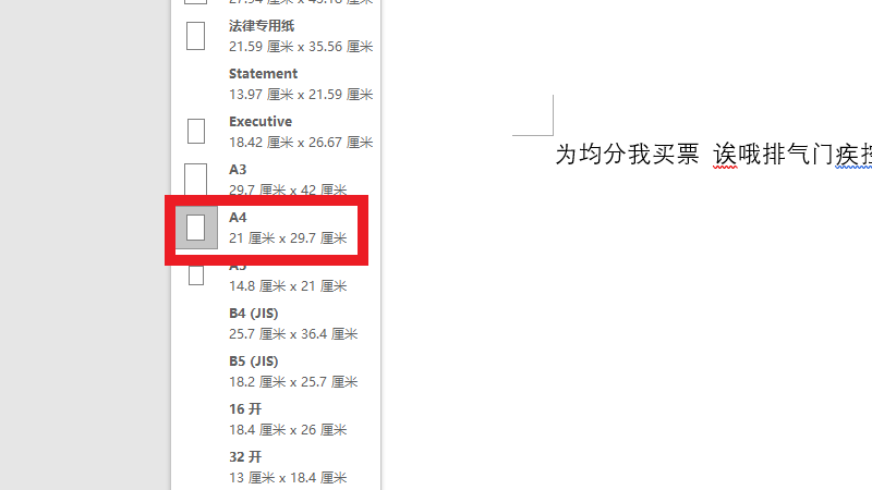 在纸张大小界面中,选择a4即可。