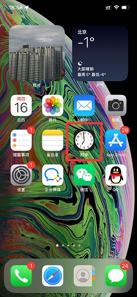 苹果手机闹钟不关会响一天。以手机iPhone 12为例,苹果手机关闭闹钟的步骤分为2步,具体操作如下:在手机界面中,点击闹钟。