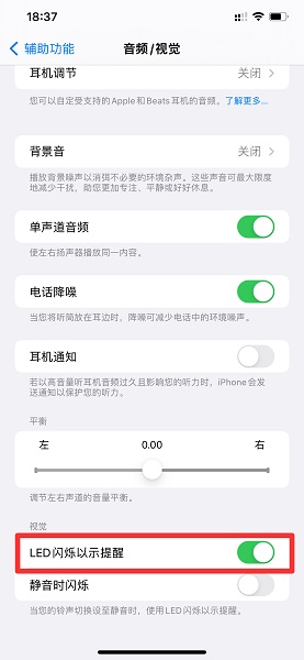在音频/视觉界面中,将LED闪烁以示提醒开启即可。