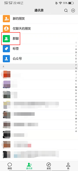 群里现在无法发起接龙表格,只能发起接龙。以vivos9手机为例,群里发起接龙的步骤共需6步。具体操作步骤如下:在通讯录的界面中,点击群聊。