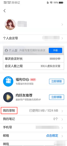 腾讯会议的云录制存在我的录制里。以vivos9手机为例,查看腾讯会议云录制存在哪里的步骤共需3步。具体操作步骤如下:在腾讯会议首页的界面中,点击头像。