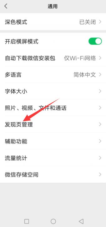点击通用,选择发现页管理。