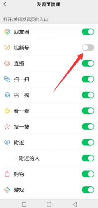 进入页面,将视频号的按钮关闭即可隐藏。