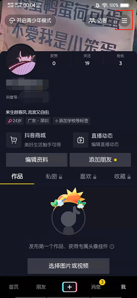 抖音可以在隐私设置的界面中屏蔽通讯录好友。以vivos9手机为例,抖音屏蔽通讯录好友的步骤共需5步。具体操作步骤如下:在我的界面中,点击三条横线图标。
