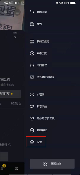 在展开的列表中,点击设置。