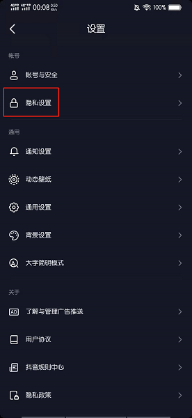 在设置的界面中,点击隐私设置。