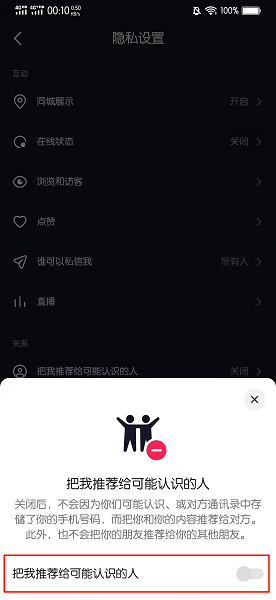 在展开的界面中,关闭把我推荐给可能认识的人即可。