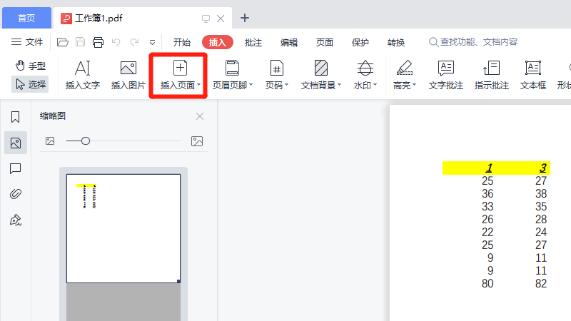 在展开的插入中,点击插入页面。