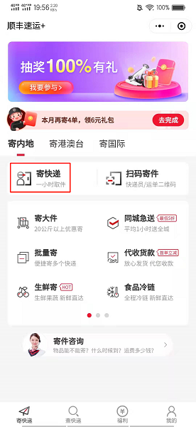 简介:1、在微信首页的界面中,点击搜索图标。2、在搜索框的界面中,输入顺丰。3、在搜索结果的界面中,点击顺丰速运。4、在顺丰速运的界面中,点击寄快递。5、在寄快递的界面中,填写资料。6、填写完资料之后,点击下单即可。本视频由vivos9、OriginOS1.0、微信8.0.16录制