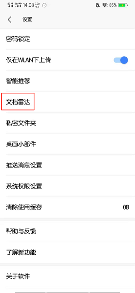 在设置的界面中,点击文档雷达。