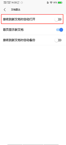 在文档雷达的界面中,关闭接收到新文档时自动打开即可。