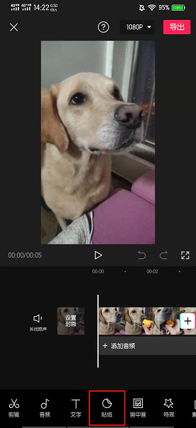 可以在剪映中使用贴纸功能在视频中画红圈。以vivos9手机为例,在视频中画红圈的步骤共需4步。具体操作步骤如下:在视频剪辑的界面中,点击贴纸。