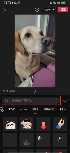 在贴纸的界面中,点击搜索框。