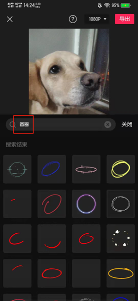 在搜索框的界面中,输入圆圈。