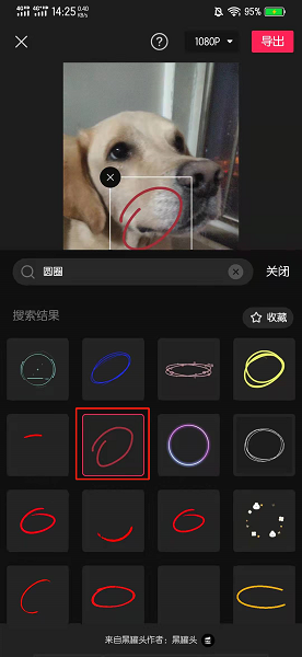 在搜索结果的界面中,点击红圈贴纸即可。
