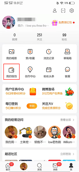 微博右下角红包是限时活动,活动结束后无法调出,现在只能查看自己收到的红包。以vivos9手机为例,查看自己收到的红包的步骤共需5步。具体操作步骤如下:在我的界面中,点击我的钱包。