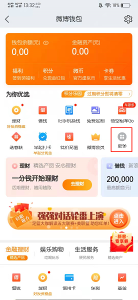 在微博钱包的界面中,点击更多。