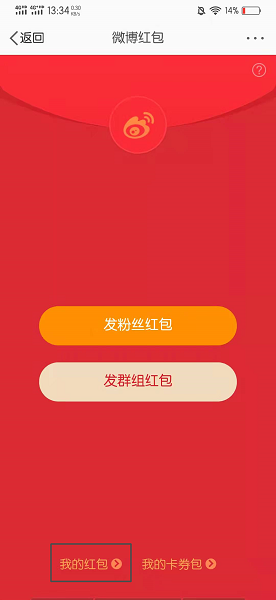 在微博红包的界面中,点击我的红包。