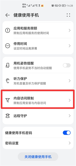 华为手机限制访问网站需要在健康使用手机中,设置内容访问限制即可。以手机华为p50为例,华为手机限制访问网站的步骤分为6步,具体操作如下:在手机设置界面中,点击健康使用手机。