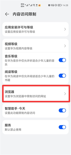 简介:1、在手机设置界面中,点击健康使用手机。2、在健康使用手机界面中,点击内容访问限制。3、在内容访问限制界面中,点击浏览器。4、在浏览器界面中,点击禁止访问的网站。5、在禁止访问的网站展开的选项中,点击从网页浏览历史添加。6、在展开的界面中,点击对号保存网址即可。本视频由华为p50、HarmonyOS2.0.0、录制