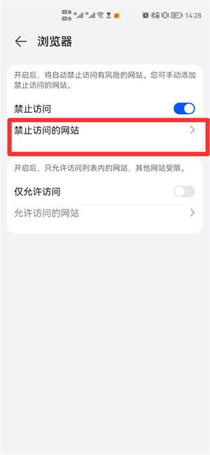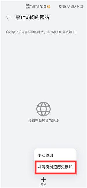 在禁止访问的网站展开的选项中,点击从网页浏览历史添加。