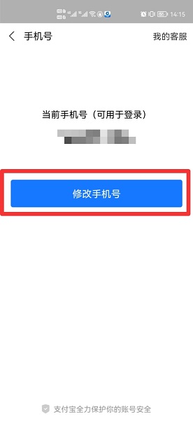 在手机号界面中,点击修改手机号。