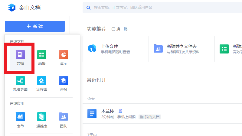 创建共享文档需要在金山文档中创建文档并选择任何人可编辑进行创建即可。以电脑联想拯救者Y9000P为例,创建共享文档的步骤分为5步,具体操作如下:在金山文档界面中,点击新建。
